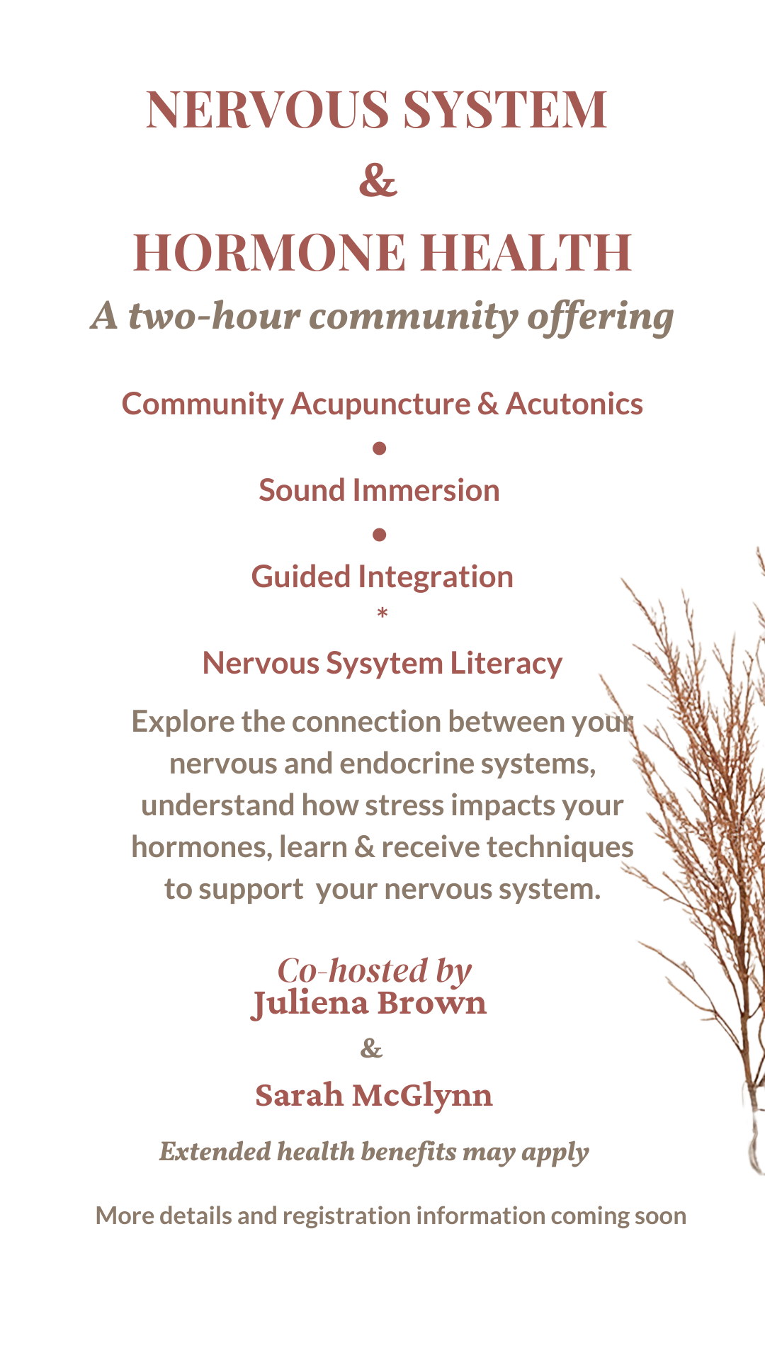Participants will receive treatments in a shared space while also gaining practical insight into how the nervous system and hormonal systems influence one another.